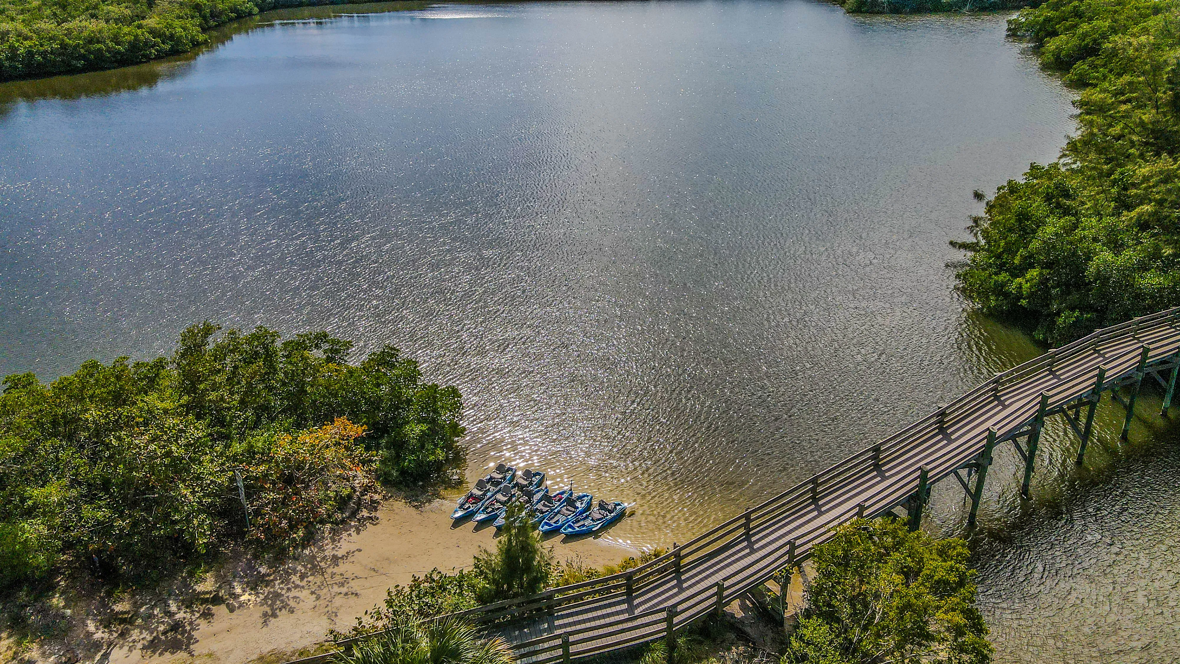 You know you're starting your day off right when your paddle starts off a dirt road on an island. This remote launch site is a perfect spot to begin your paddle into the Indian River Lagoon. Our favorite Island to paddle to is Pelican Island, the first National Wildlife Refuge. Once you get to the island there are markers around it so stay outside of the markers, to keep the island wild and free for pelicans and other animals. Just off the launch site is Roosevelt Island which offers incredible fishing in and along the mangroves.