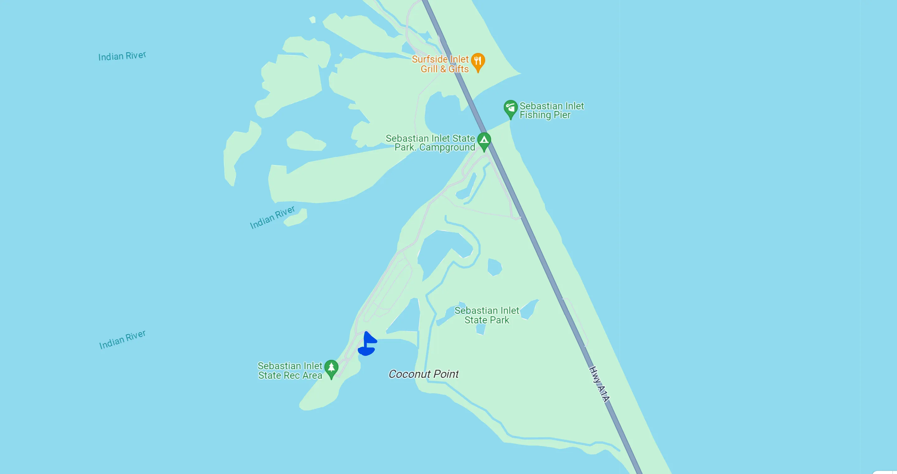 From this location you can head either south or north. If heading south, we like to paddle east to Coconut Pt. and then work our way down the lagoon’s edge which puts us near HWY A1A. If the wind is blowing from the Northwest this is a nice, protected paddle. If the tide is right, you can head north and go across the Sebastian Inlet towards Little Grace Island. At low tide a sandbar can form in the lagoon, which makes the water only 1-2’ deep and crystal clear. Be on the look out for dolphins and the occasional shark that comes into the lagoon. The